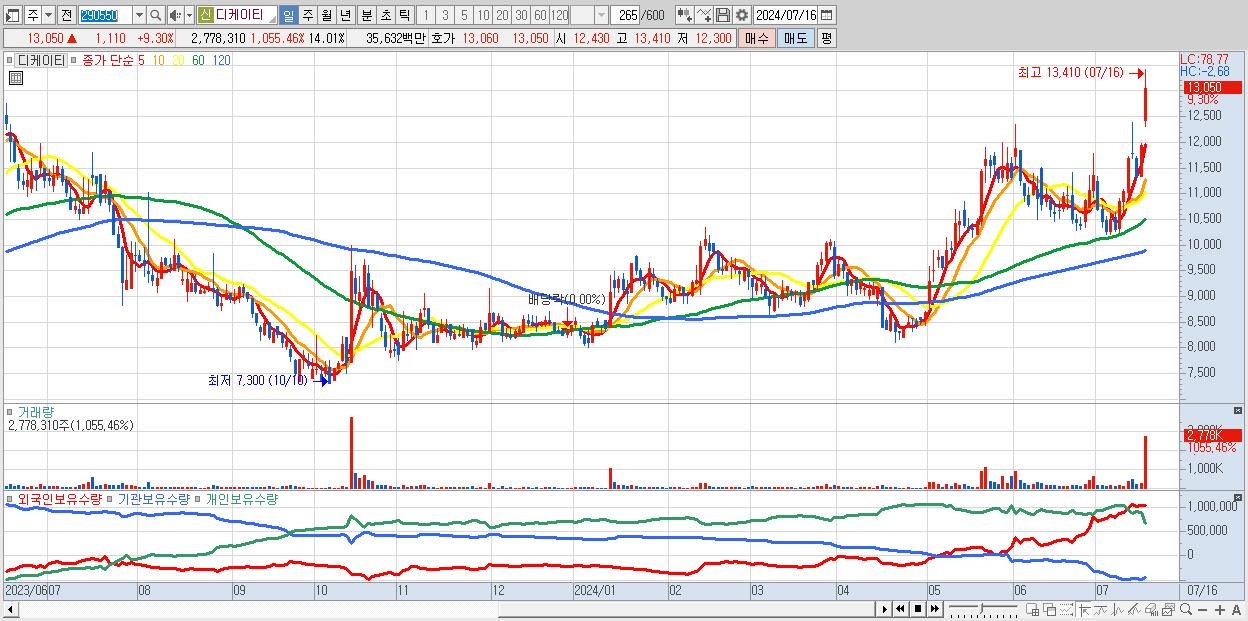디케이티 13,050원 ▲ 9.3% (KOSDAQ, 290550)