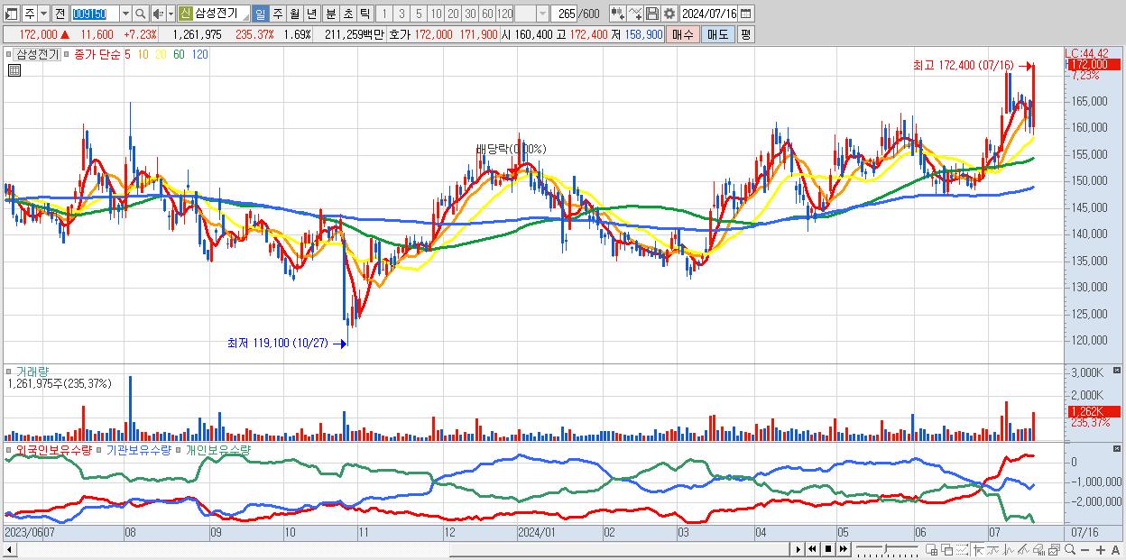 삼성전기 172,000원 ▲ 7.23% (KOSPI, 009150)