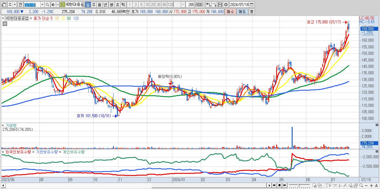 시총: 97,416억 거래량: 23,248,944 거래대금:2,594억 업종:운수장비
