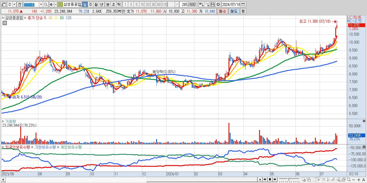 1.삼성중공업 11,070원 ▲ 1.28% (KOSPI, 010140)