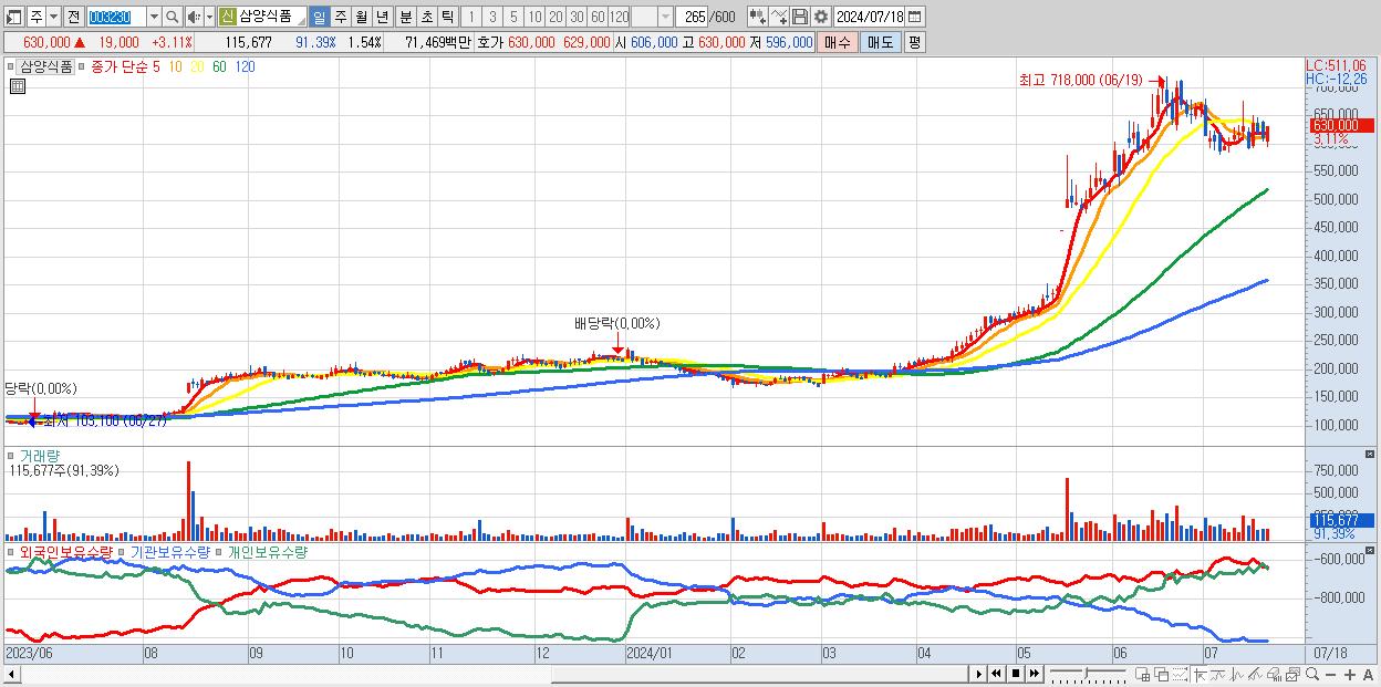 - 삼양식품 (630,000원 ▲ 3.11% , 시총: 47,458억, 외국인 순매수 거래금:182억)