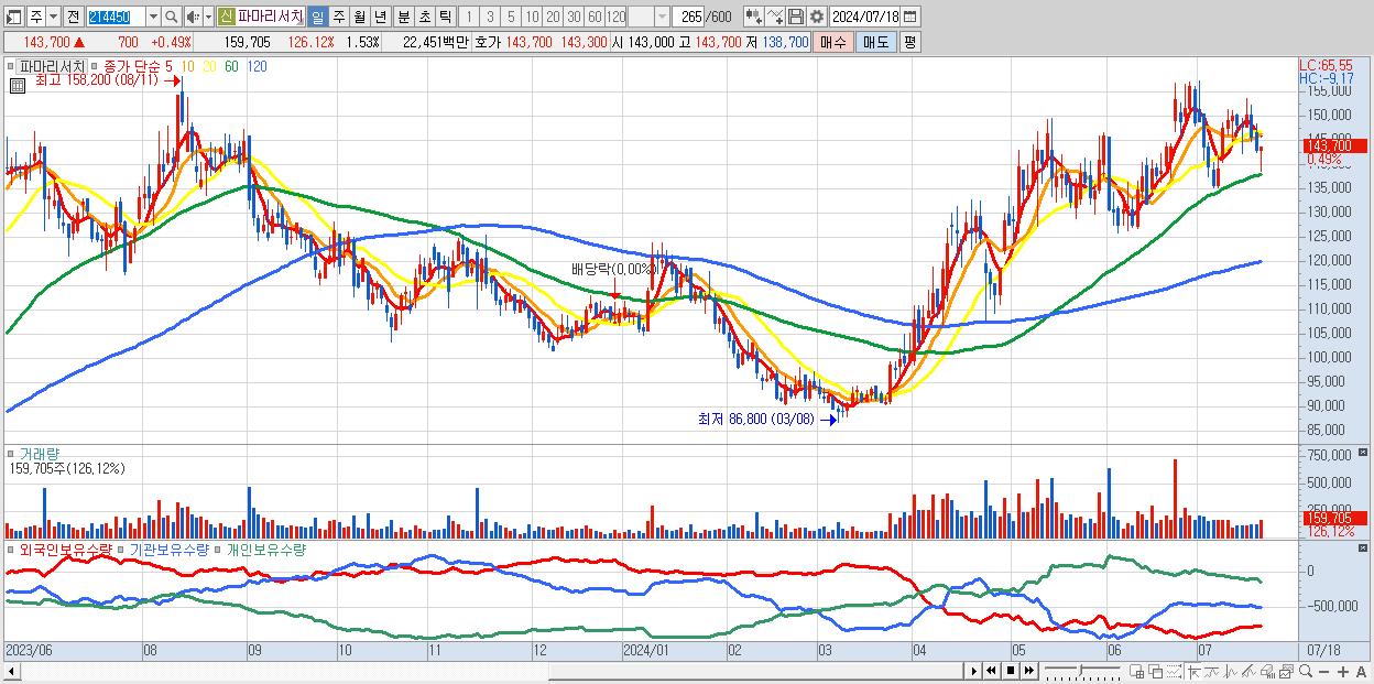 - 파마리서치 (143,700원 ▲ 0.49% , 시총: 15,021억, 외국인 순매수 거래금:77억)