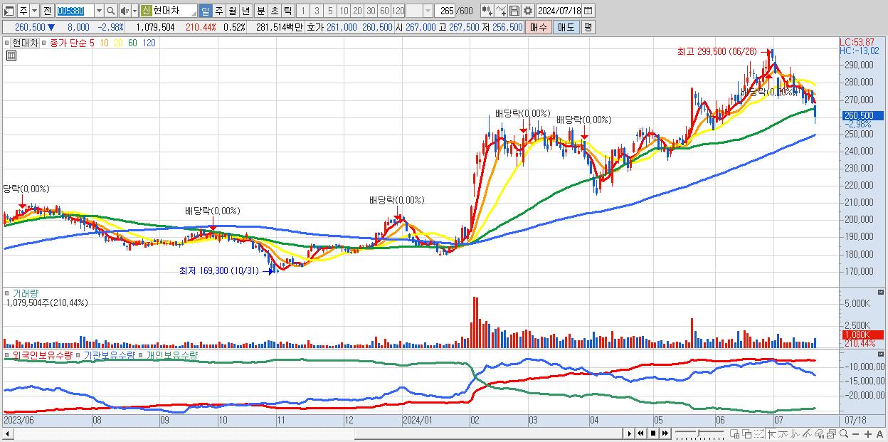 - 현대차 (260,500원 ▼ -2.98% , 시총: 545,529억, 외국인 순매수 거래금:60억)