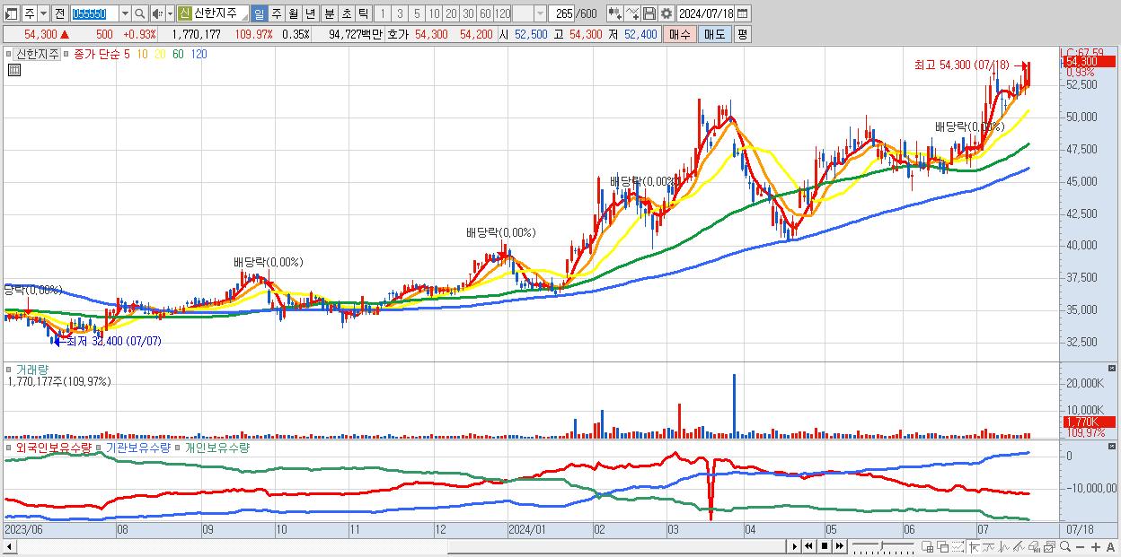 신한지주 54,300원 ▲ 0.93% (KOSPI, 055550)