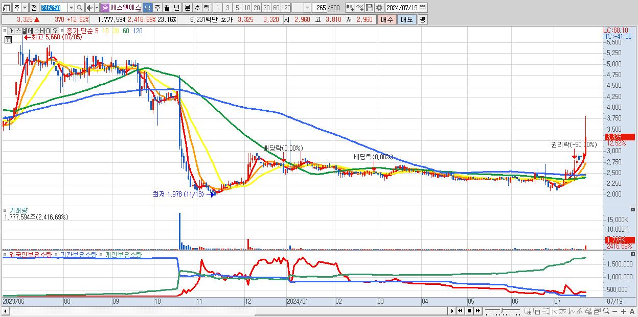 - 에스엘에스바이오 (3,325원 ▲ 12.52% , 시총: 255억, 거래량: 1,777,594, 거래대금:62억)