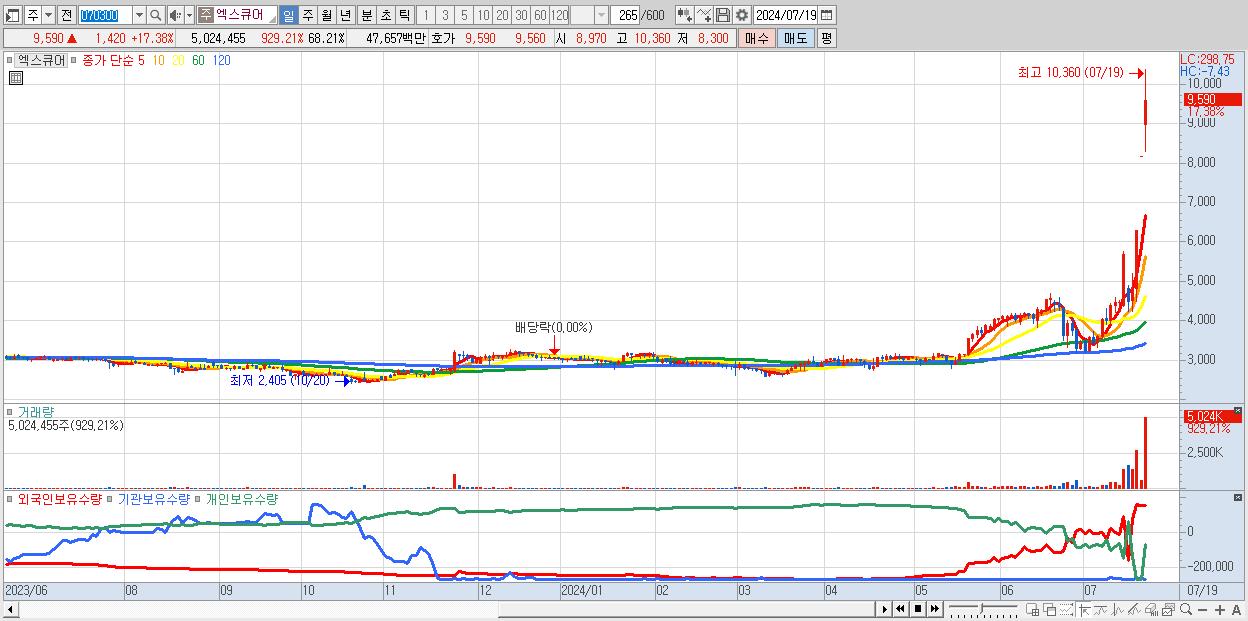 - 엑스큐어 (9,590원 ▲ 17.38% , 시총: 706억, 거래량: 5,024,455, 거래대금:477억)