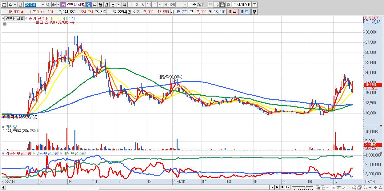 - 인벤티지랩 (16,990원 ▲ 11.19% , 시총: 1,477억, 거래량: 2,244,850, 거래대금:378억)