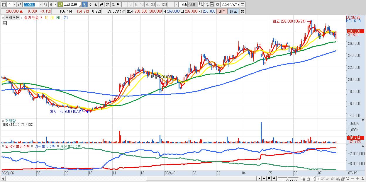 2024-07-16 목표주가: 270,000 투자의견: HOLD 상승여력: -4.09% 제공처:다올투자증권/최광식