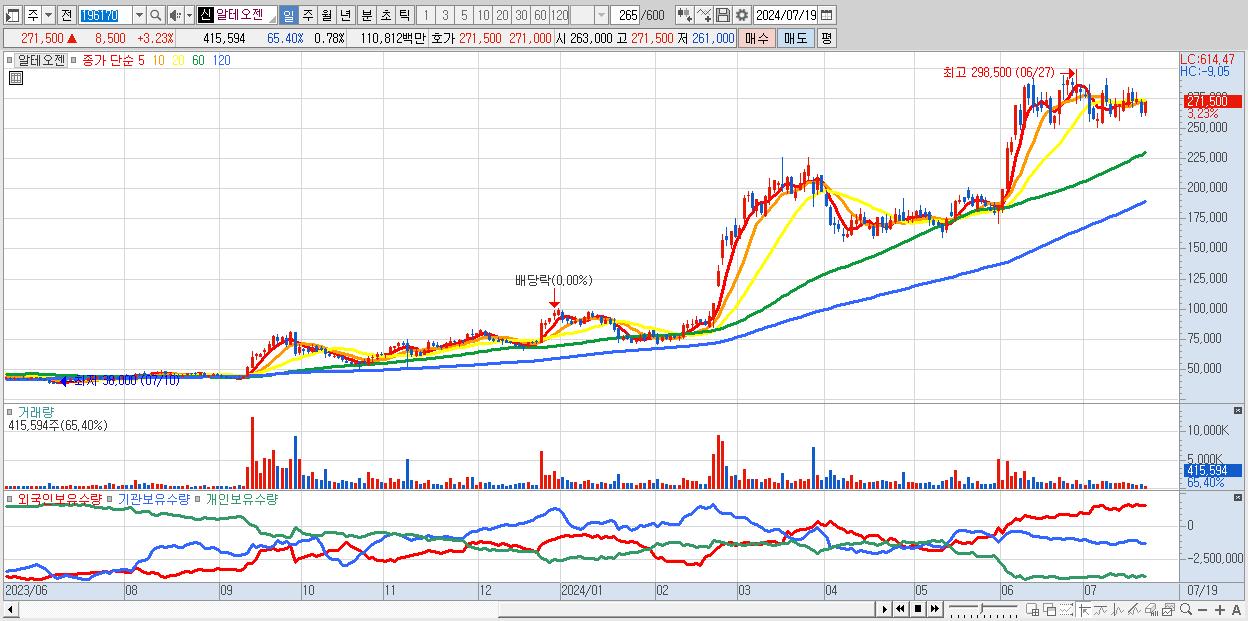 2.알테오젠 271,500원 ▲ 3.23% (KOSDAQ, 196170)