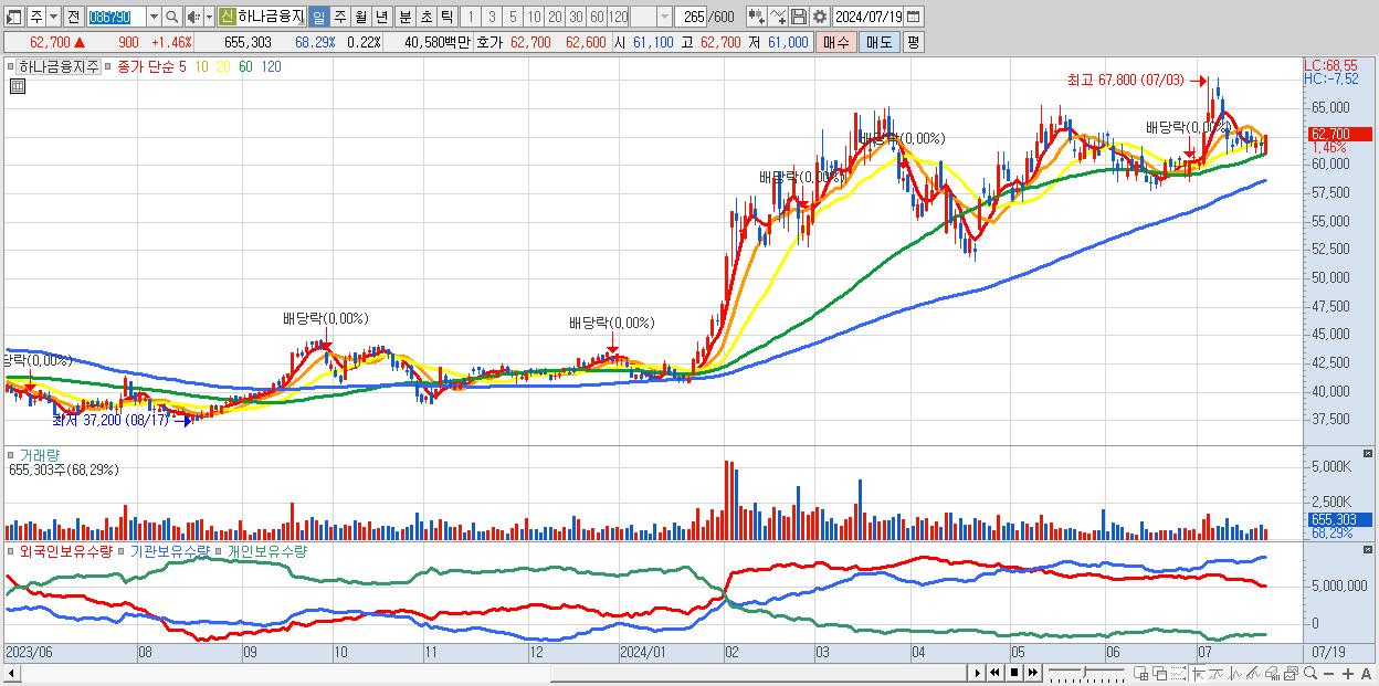 - 하나금융지주 (62,700원 ▲ 1.46% , 시총: 183,308억, 외국인 순매수 거래금:69억)