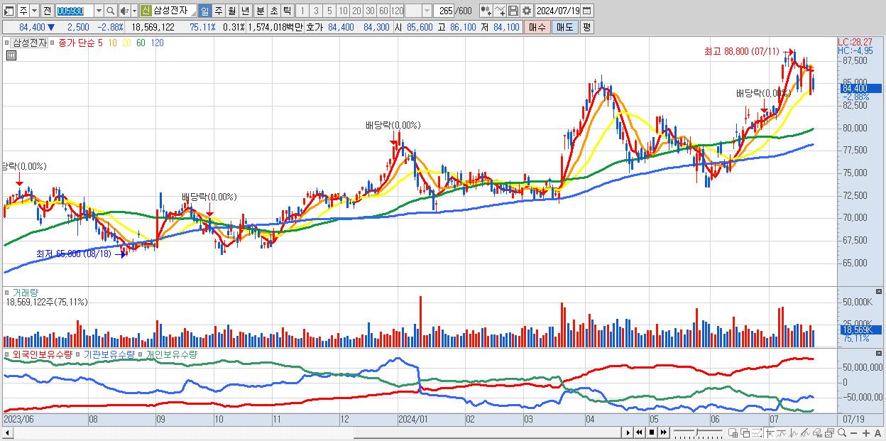1.삼성전자 84,400원 ▼ -2.88% (KOSPI, 005930)