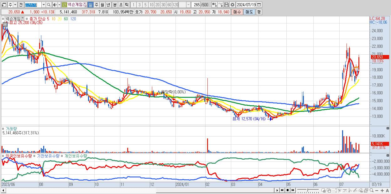 - 넥슨게임즈 (20,650원 ▲ 10.13% , 시총: 13,592억, 거래량: 5,141,460, 거래대금:1,040억)