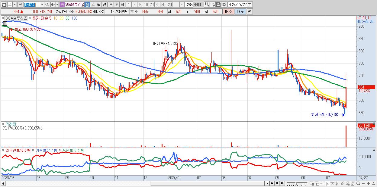 - SGA솔루션즈 (654원 ▲ 19.78% , 시총: 409억, 거래량: 25,174,398, 거래대금:167억)