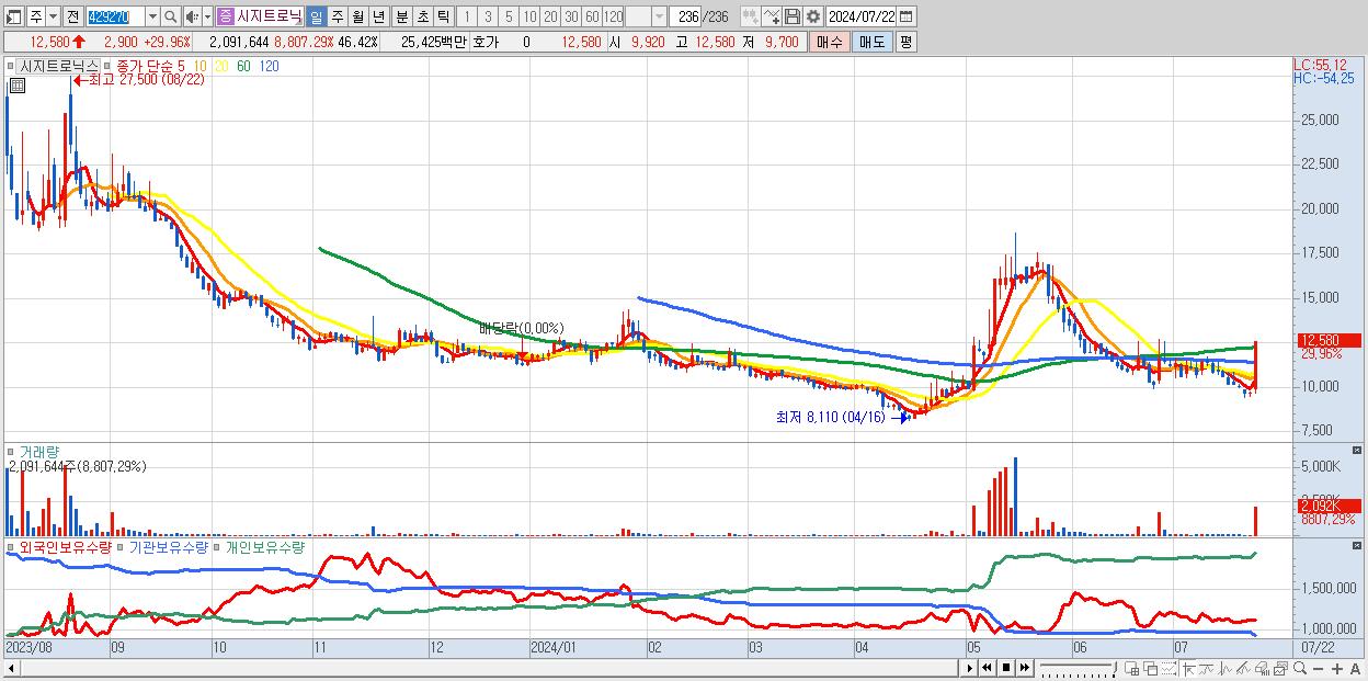 1.시지트로닉스 12,580원 ▲ 29.96% (KOSDAQ, 429270)