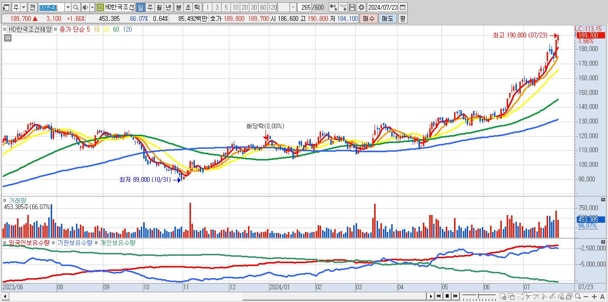 HD한국조선해양 189,700원 ▲ 1.66% (KOSPI, 009540)