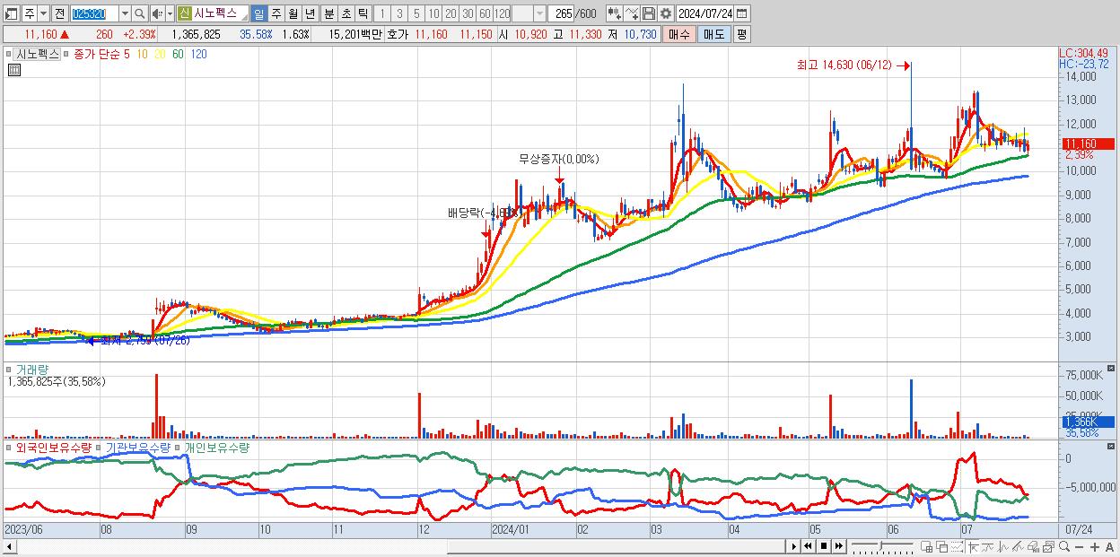 - 시노펙스 (11,160원 ▲ 2.39% , 시총: 9,354억, 외국인 순매수 거래금:45억)