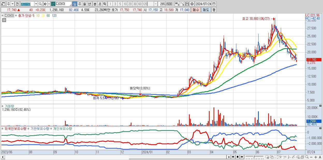 - 디아이 (17,740원 ▲ 0.23% , 시총: 5,020억, 외국인 순매수 거래금:38억)