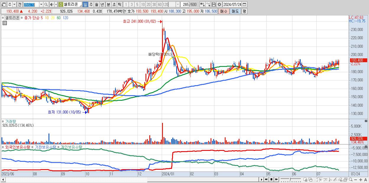 - 셀트리온 (193,400원 ▲ 2.22% , 시총: 419,665억, 외국인 순매수 거래금:342억)