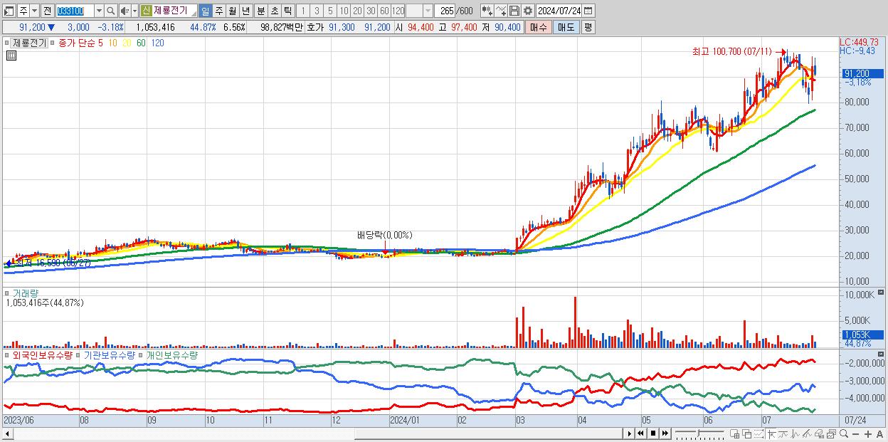 30.제룡전기 91,200원 ▼ -3.18% (KOSDAQ, 033100)