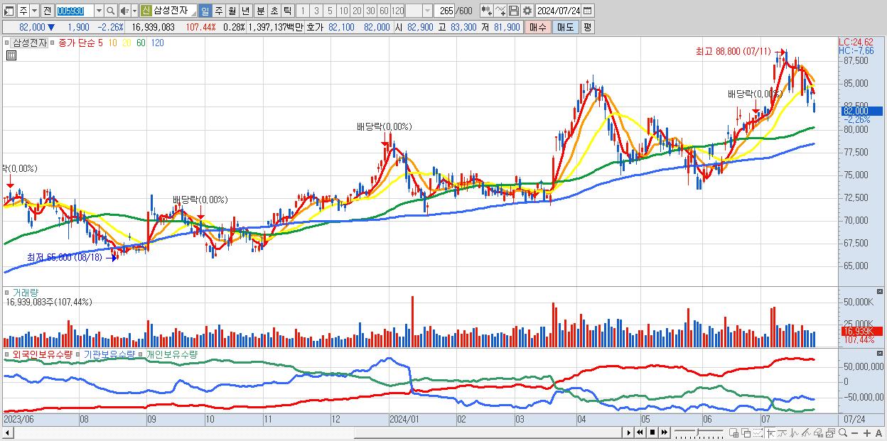 1.삼성전자 82,000원 ▼ -2.26% (KOSPI, 005930)
