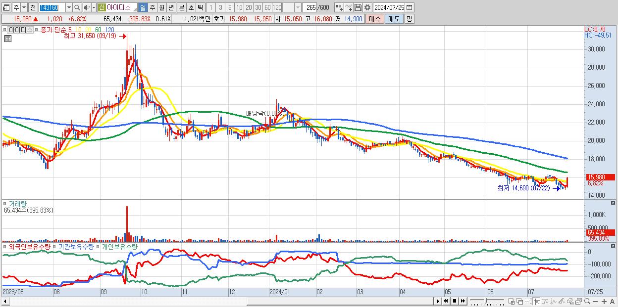 - 아이디스 (15,980원 ▲ 6.82% , 시총: 1,712억, 거래량: 65,434, 거래대금:10억)