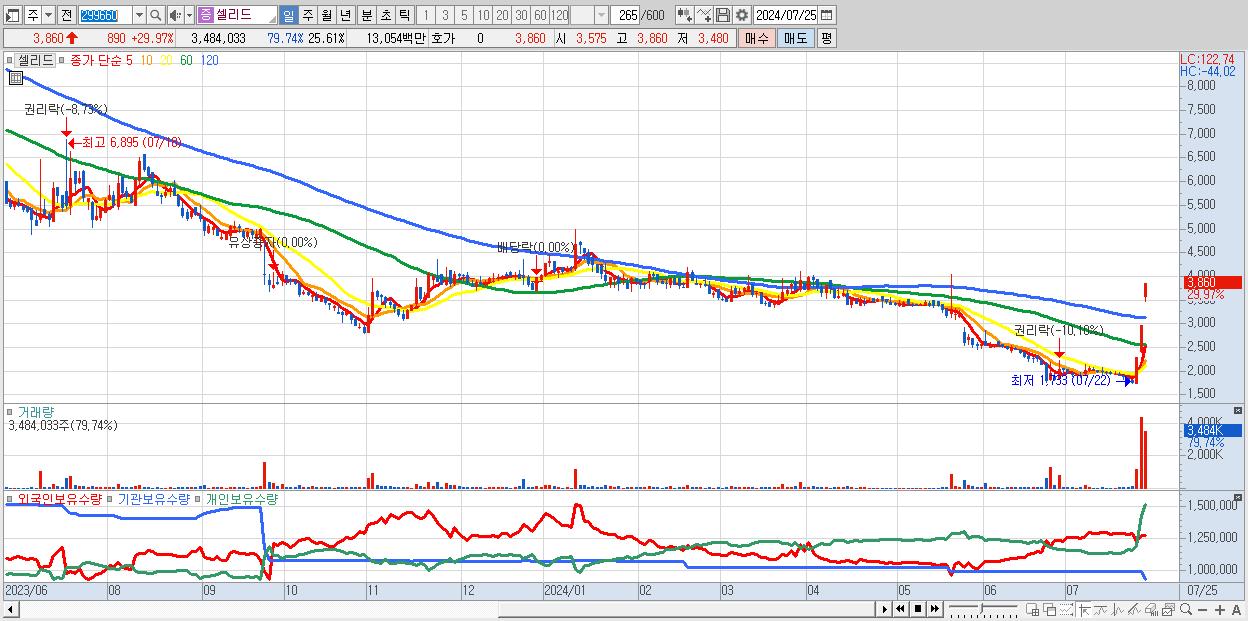 2.셀리드 3,860원 ▲ 29.97% (KOSDAQ, 299660)