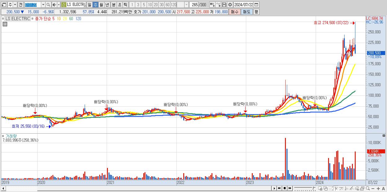 - LS ELECTRIC (200,500원 ▼ -10.09% , 시총: 60,150억, 거래량: 7,693,996, 거래대금:18,097억)