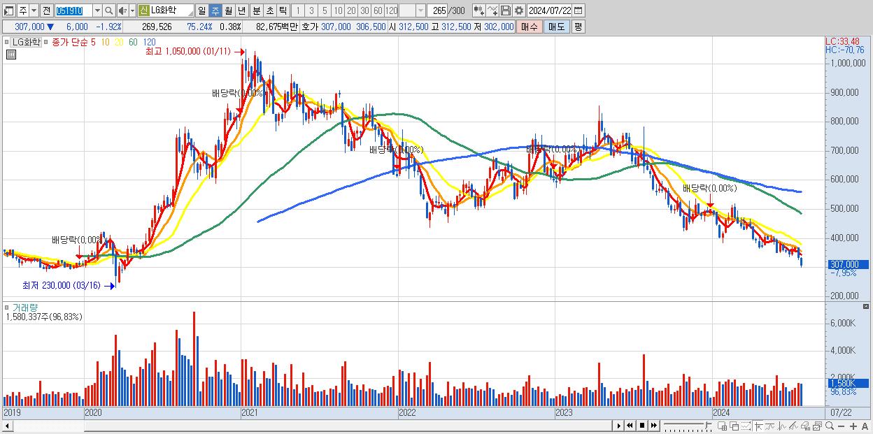 29.LG화학 307,000원 ▼ -7.95% (KOSPI, 051910)