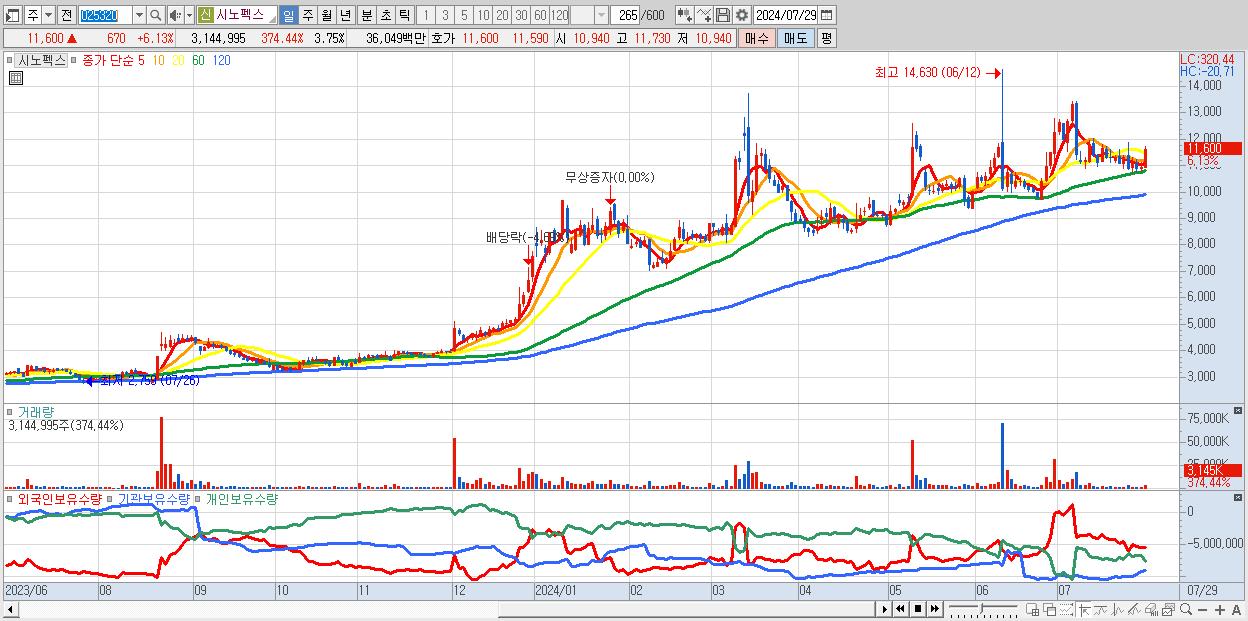- 시노펙스 (11,600원 ▲ 6.13% , 시총: 9,723억, 외국인 순매수 거래금:104억)