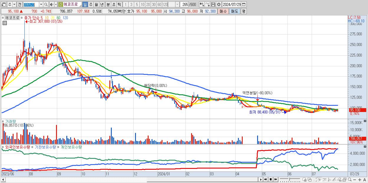 - 에코프로 (95,100원 ▲ 0.74% , 시총: 126,615억, 외국인 순매수 거래금:82억)