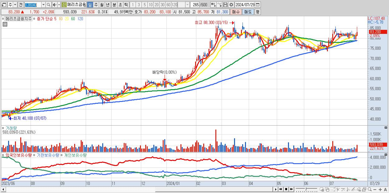 - 메리츠금융지주 (83,200원 ▲ 2.09% , 시총: 158,679억, 외국인 순매수 거래금:47억)