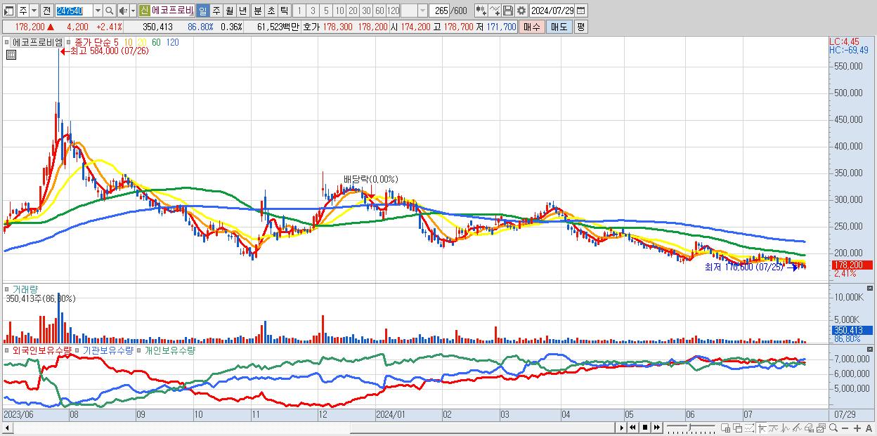 - 에코프로비엠 (178,200원 ▲ 2.41% , 시총: 174,282억, 외국인 순매수 거래금:77억)