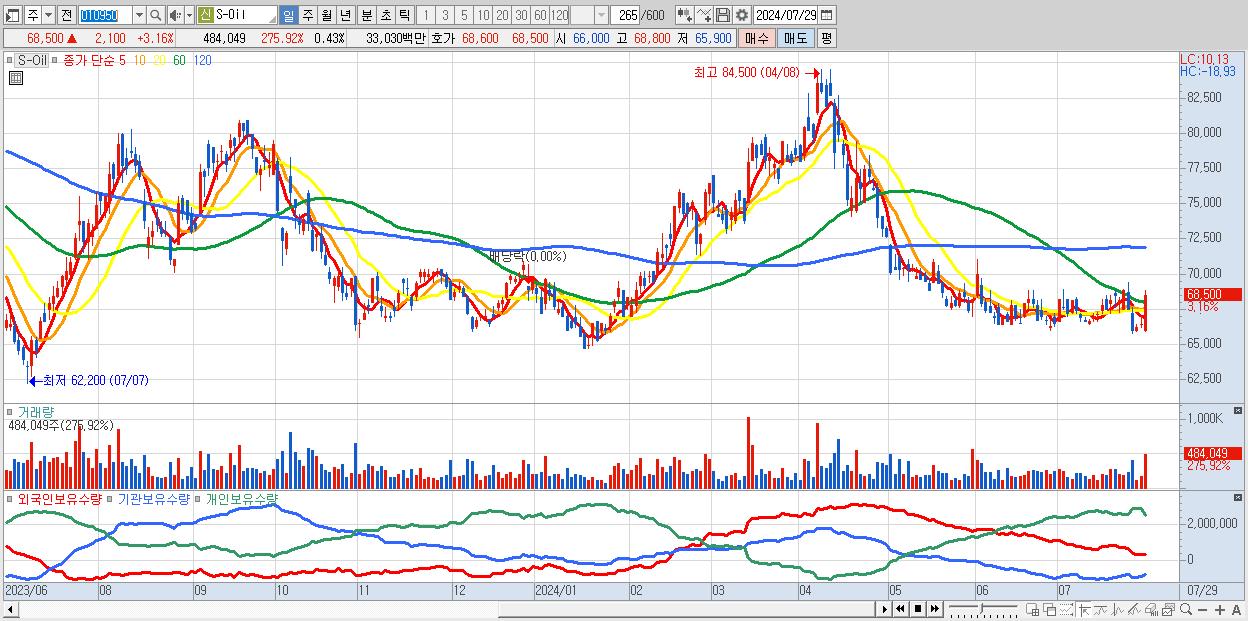 - S-Oil (68,500원 ▲ 3.16% , 시총: 77,119억, 외국인 순매수 거래금:151억)