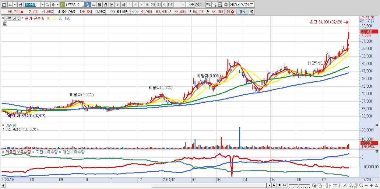 - 신한지주 (60,700원 ▲ 4.66% , 시총: 309,202억, 외국인 순매수 거래금:330억)