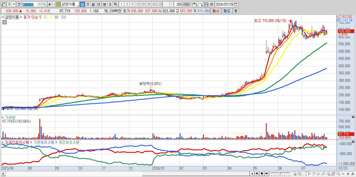 - 삼양식품 (638,000원 ▲ 2.41% , 시총: 48,061억, 외국인 순매수 거래금:167억)