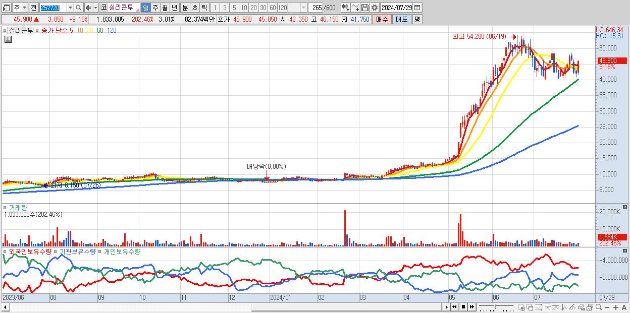 - 실리콘투 (45,900원 ▲ 9.16% , 시총: 27,941억, 외국인 순매수 거래금:120억)