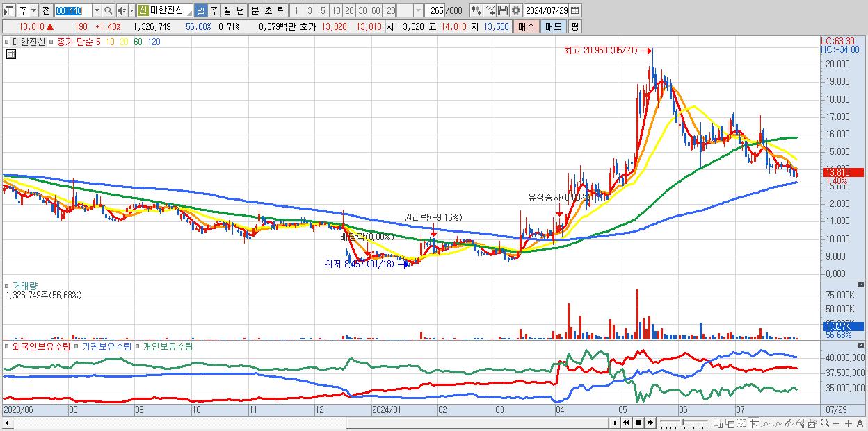 30.대한전선 13,810원 ▲ 1.4% (KOSPI, 001440)