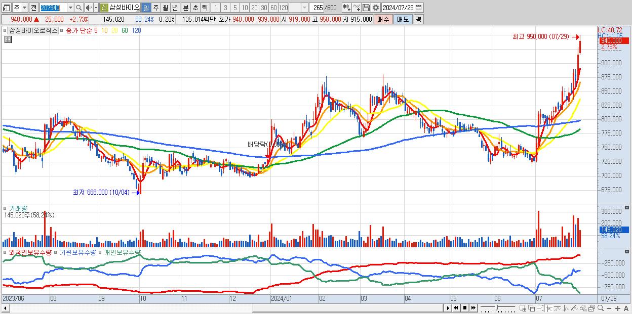 - 삼성바이오로직스 (940,000원 ▲ 2.73% , 시총: 669,036억, 외국인 순매수 거래금:278억)