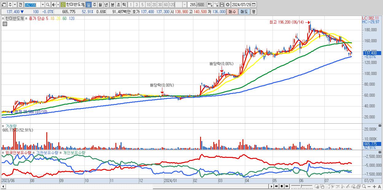 - 한미반도체 (137,400원 ▼ -0.07% , 시총: 133,269억, 거래량: 665,775, 거래대금:915억)