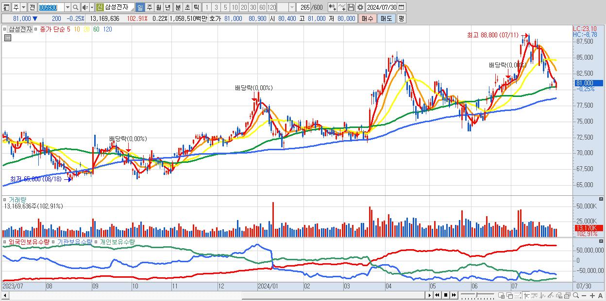 1.삼성전자 81,000원 ▼ -0.25% (KOSPI, 005930)
