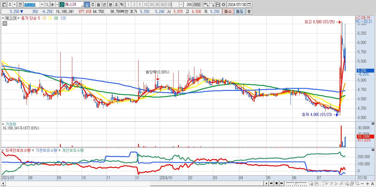 - 예스24 (5,250원 ▼ -6.25% , 시총: 1,313억, 거래량: 16,188,341, 거래대금:988억)