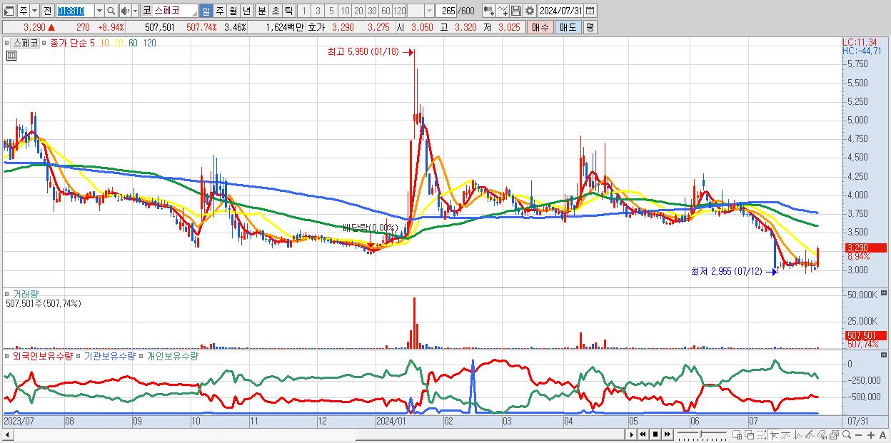 - 스페코 (3,290원 ▲ 8.94% , 시총: 482억, 거래량: 507,501, 거래대금:16억)