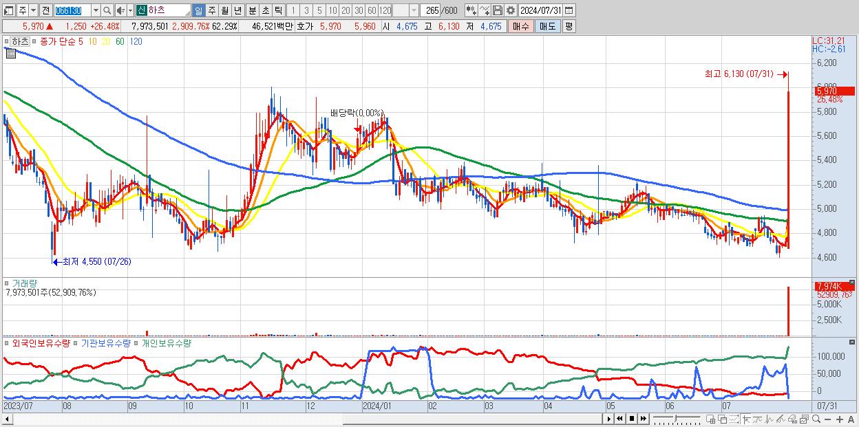 시총: 2,610억 거래량: 20,247,665 거래대금:3,259억 업종:유통