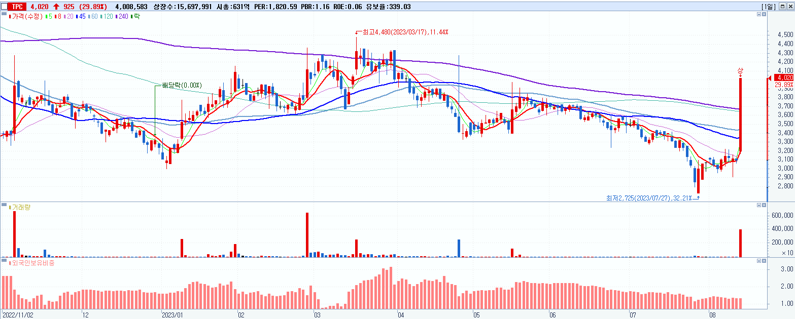 5.TPC 4,020원 ▲ 29.89% (KOSDAQ, 048770)