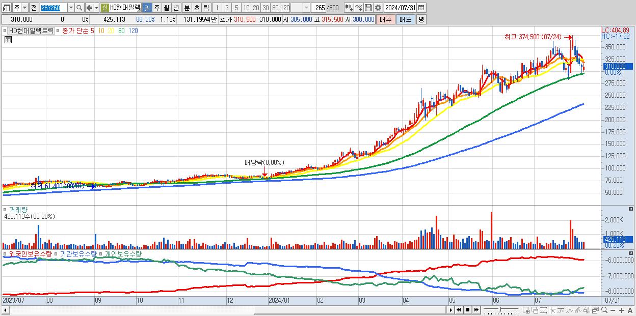 - HD현대일렉트릭 (310,000원 0% , 시총: 111,746억, 거래량: 425,113, 거래대금:1,312억)