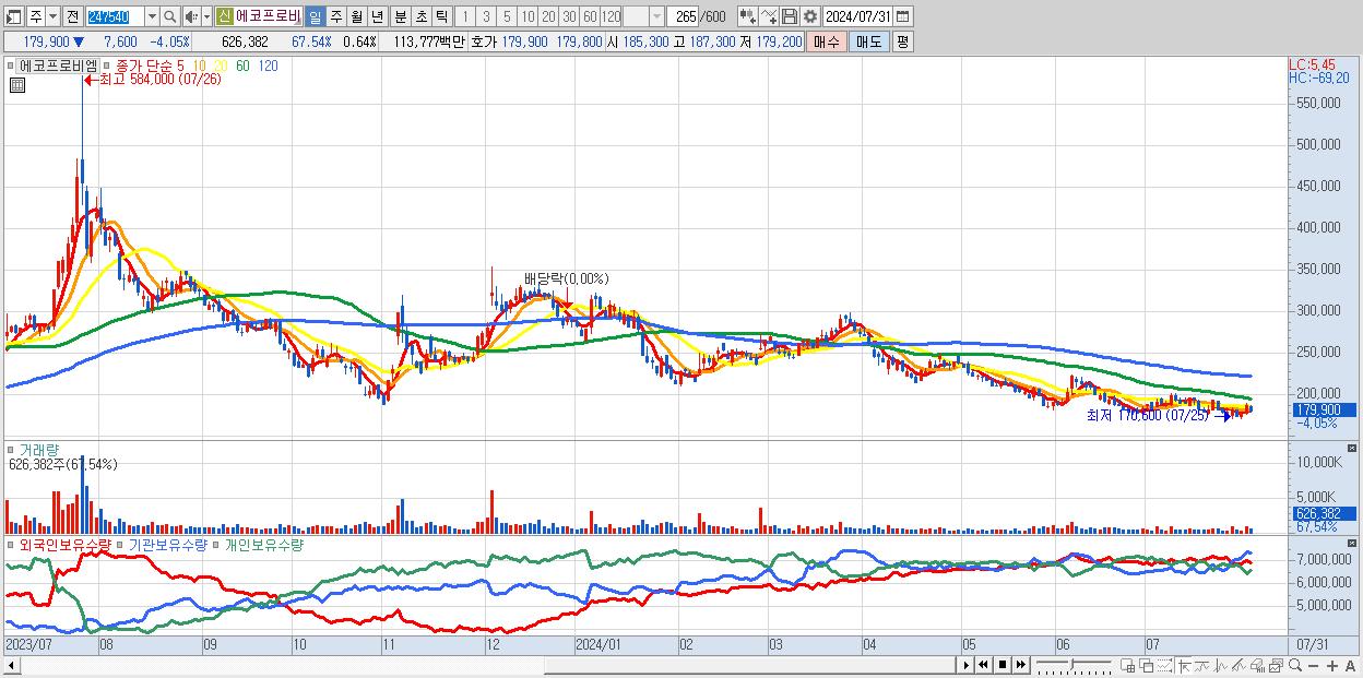 30.에코프로비엠 179,900원 ▼ -4.05% (KOSDAQ, 247540)