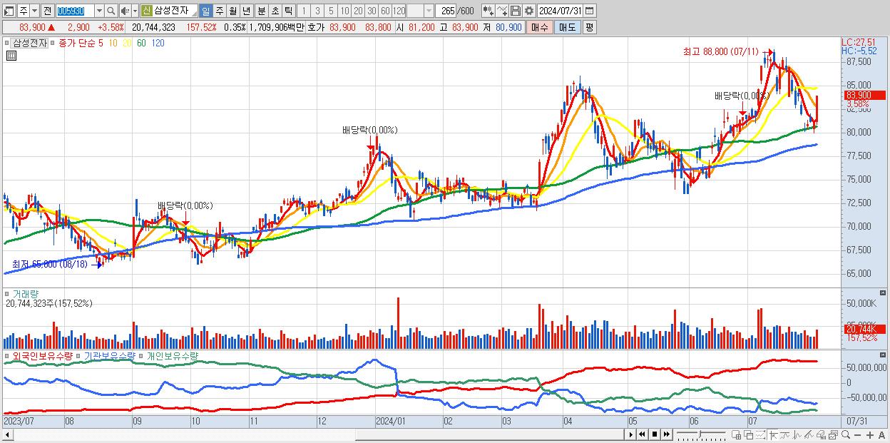 1.삼성전자 83,900원 ▲ 3.58% (KOSPI, 005930)