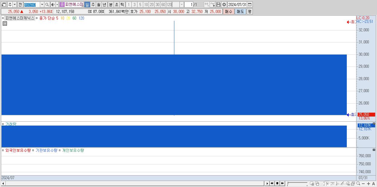 - 피앤에스미캐닉스 (25,050원 ▲ 13.86% , 시총: 1,621억, 거래량: 12,107,158, 거래대금:3,618억)