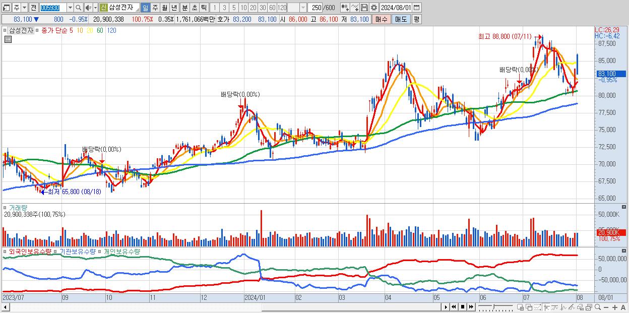1.삼성전자 83,100원 ▼ -0.95% (KOSPI, 005930)