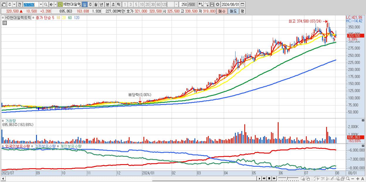 - HD현대일렉트릭 (320,500원 ▲ 3.39% , 시총: 115,531억, 거래량: 695,863, 거래대금:2,271억)